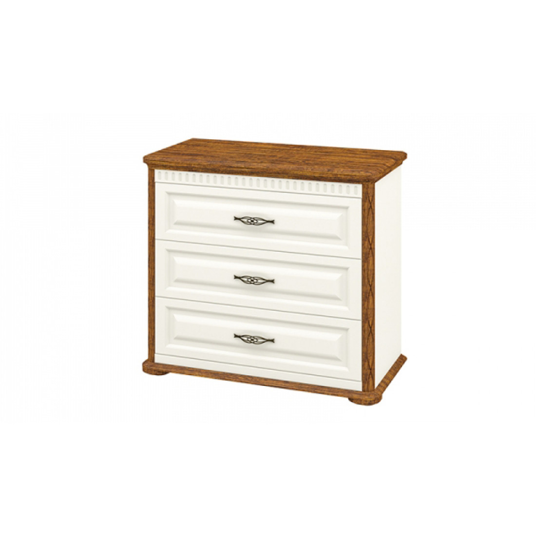 Бельевой комод для спальни МН-126-06 новой серии Марсель от Мебель-Неман. Теплый оттенок "крем" корпуса и фасадной части дополнен эффектным рамочным обрамлением контрастного цвета "дуб кантри".
