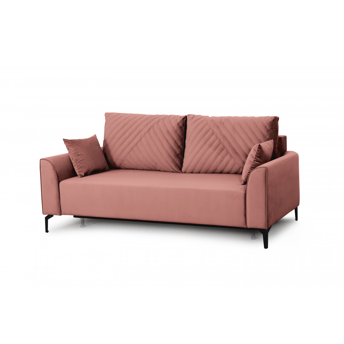 Плавные линии подлокотников позволяют удобно расположиться во время отдыха. Диван стоит на высоких металлических опорах, что позволяет использовать робот-пылесос в процессе уборки. Удобный и долговечный механизм трансформации "Тик-так" обеспечивает легкое раскладывание дивана.