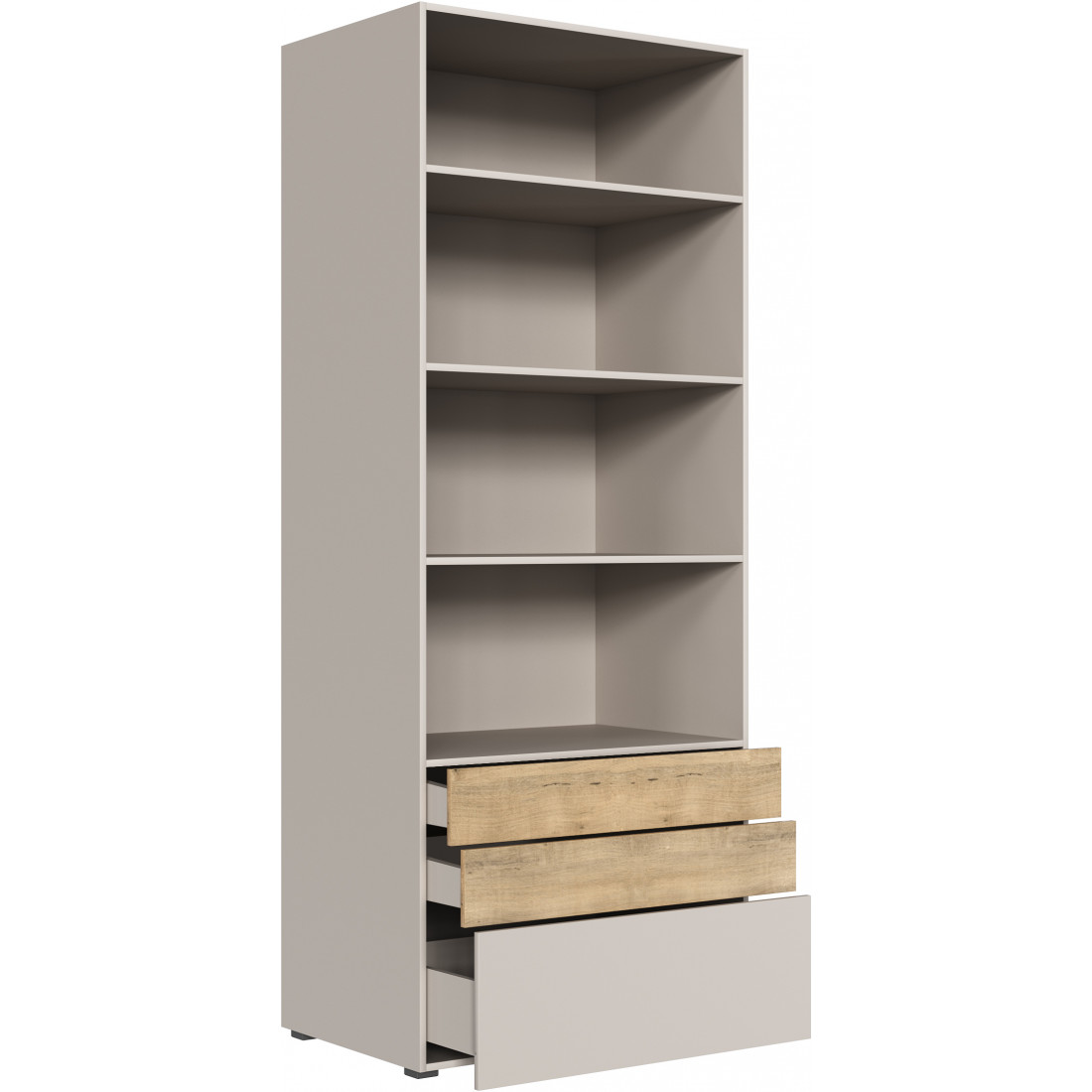 • Шкаф двухстворчатый, укомплектованный полкой, штангой и 3-мя выдвижными ящиками;