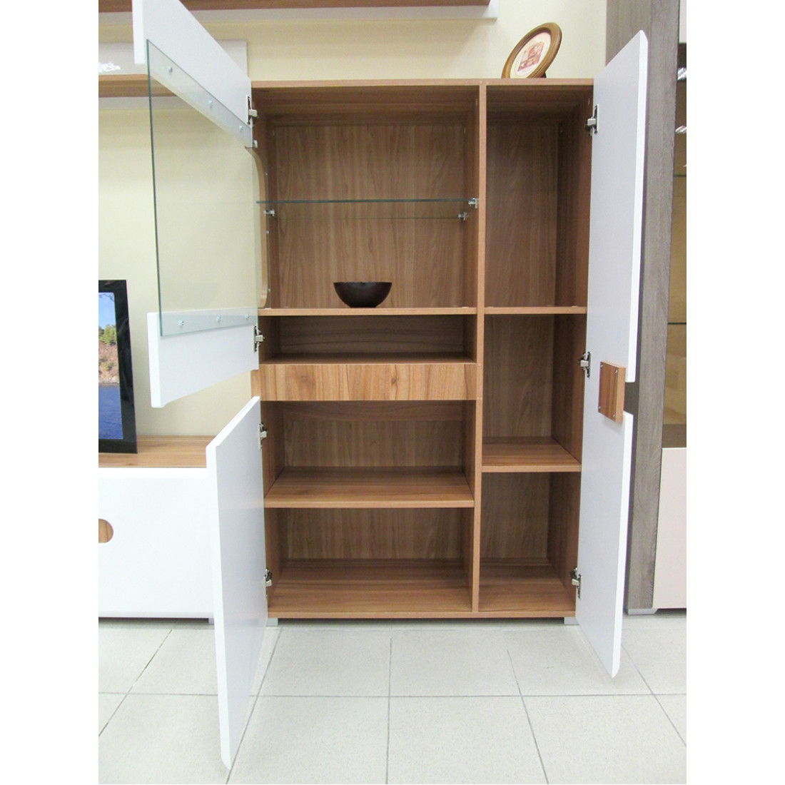 Двухстворчатый шкаф витрина для посуды в гостиную Леонардо МН-026-01 белый правый