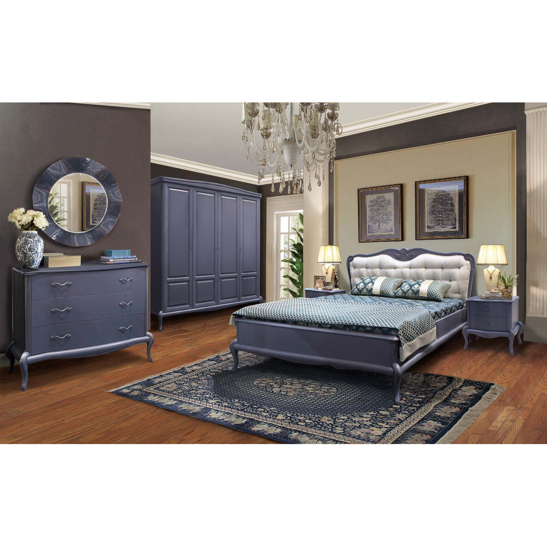 Вертикальные бруски, опоры и бруски, соединяющие их, карниз, рама спинки головной кровати из массива дуба, с художественной резьбой. Кровать с мягким элементом, обрамлённым фигурной рамкой. Двери шкафа представляют из себя раму из массива бука с филёнкой из плиты ДСП облицованной шпоном вишни. Крышка комода и тумбы прикроватной из плиты МДФ облицованной шпоном бука. В ящиках накладки гнутые, из плиты МДФ облицованной шпоном вишни, короб из плиты ламинированной, на дно ложится вкладыш облицованный тканью.