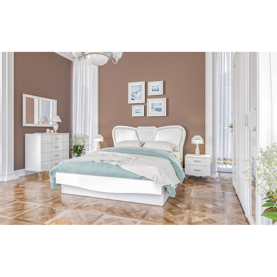 Двуспальная кровать с мягким изголовьем и ящиками МН-025-25 серии София от Мебель-Неман способна стать бесценным приобретением для всех, кто помимо создания особой атмосферы уюта и аристократичности в спальне, заботится о продуманной многофункциональности всей мебели и, конечно, о собственном ощущении удобства. Купить двуспальную кровать в красивом, изящном оформлении стоит не только за эксклюзивный вид и стильный дизайн, но и за практичность скрытых в основании выкатных бельевых ящиков.