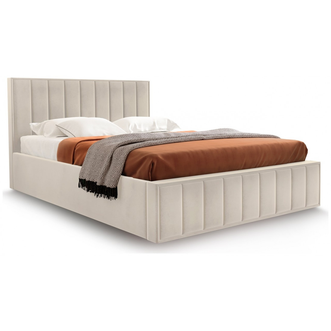 Кровать можно комплектовать ортопедическим основанием на пяти опорах или бельевым ящиком с подъемным ортопедическим основанием.