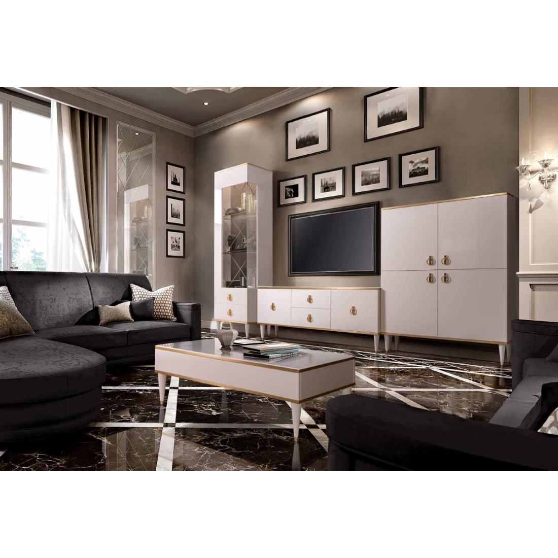 Гоостиная Rimini доступна в двух цветах: «слоновая кость» и «орех орегон».