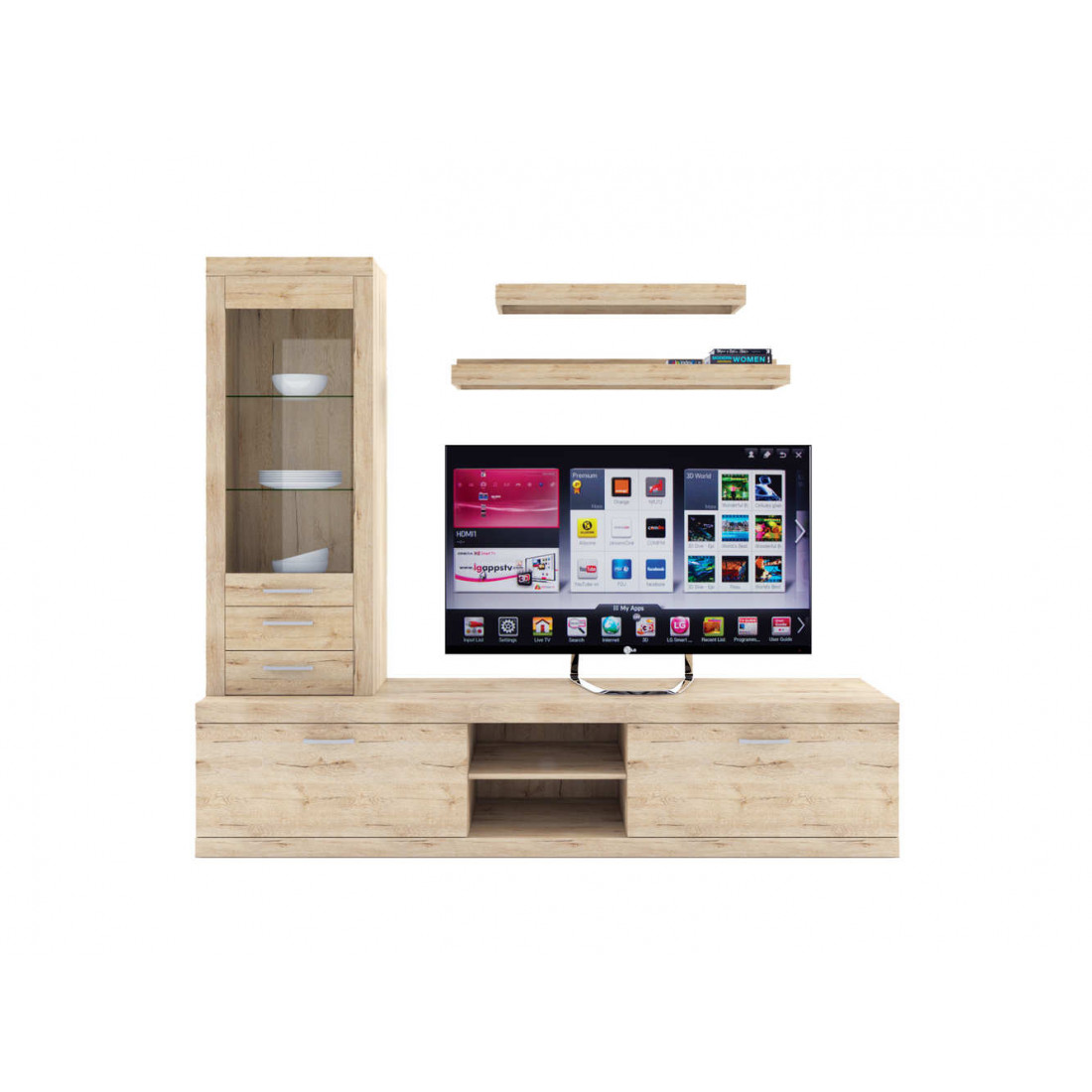 2. 4 варианта тумб RTV с выдвижными ящиками на шариковых направляющих. 2 размера надставных полок для RTV-тумб (полка TVB и полка TV), позволяющих установить выше телевизор. Варианты навесных полок, соответствующих по размеру тумбам для телевизора. Тумба RTV 2S2NL имеет глубину 351 мм, что позволяет составить модули, имеющие такую же глубину, в одну линию без выступающих элементов.