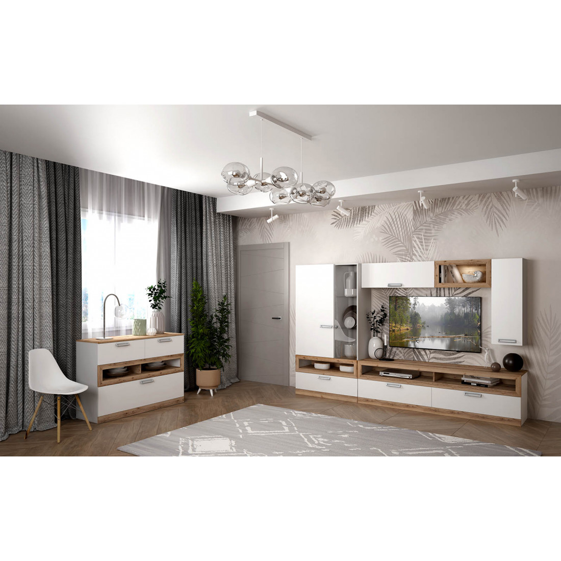 Шкаф витрина комбинированный для гостиной Лира 44 светлый