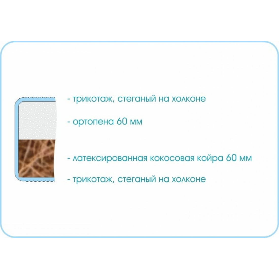 Наполнение: кокосовая плита 60 мм, ортопена 60 мм.