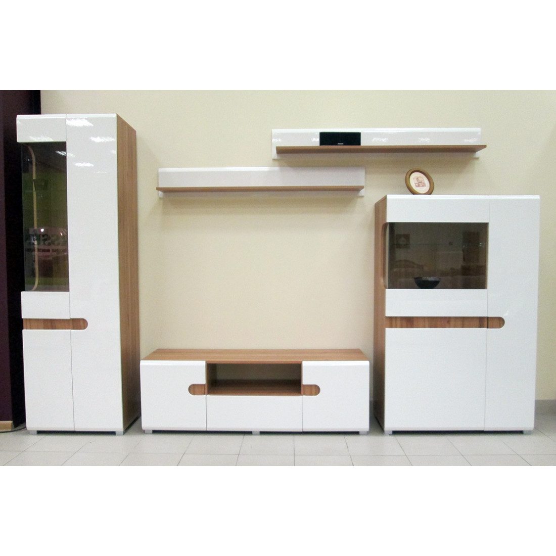 Особенности модульной мебели для гостиной Леонардо белое дерево: