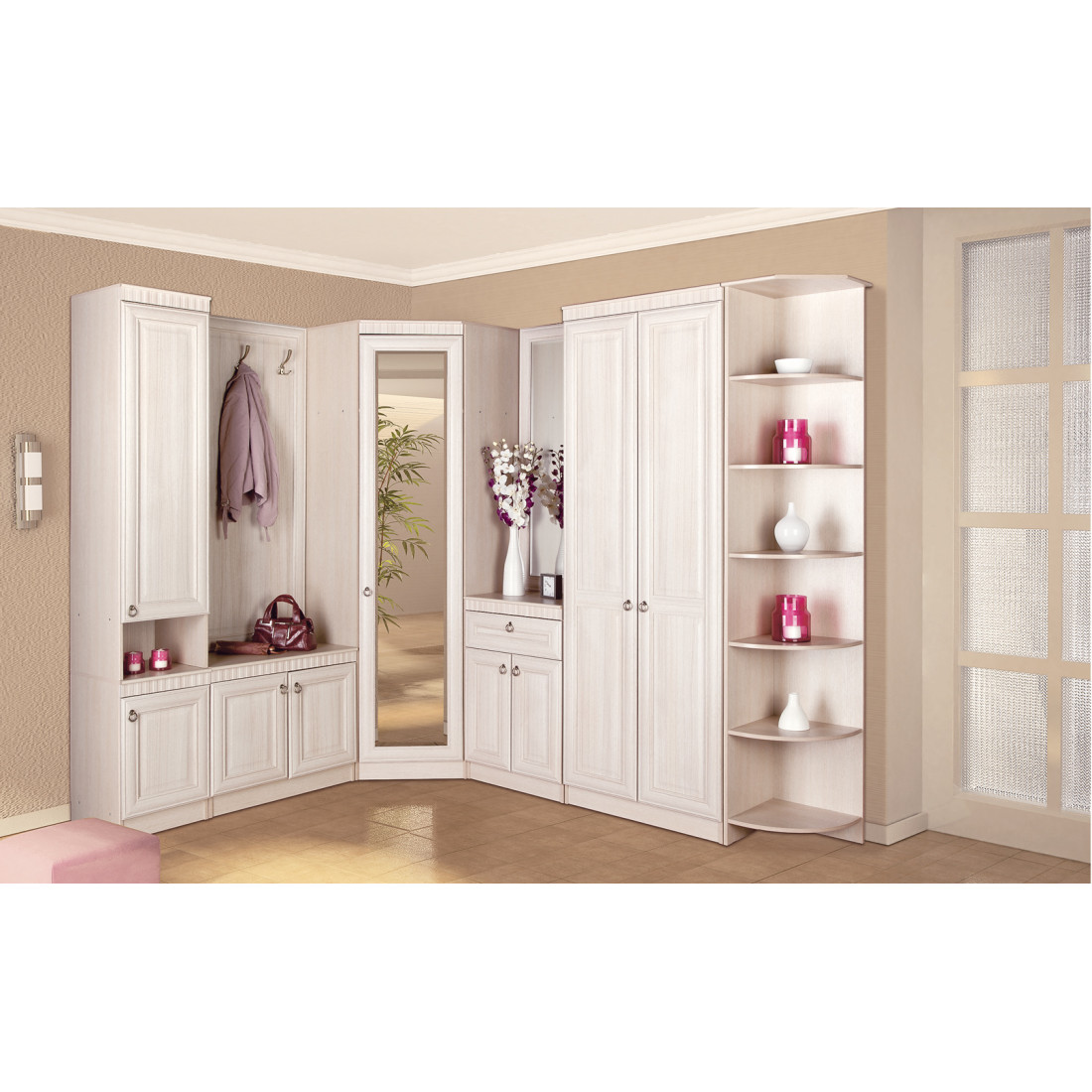 - Угловой шкаф с зеркалом для прихожей Инна 621 светлый (1 шт.)