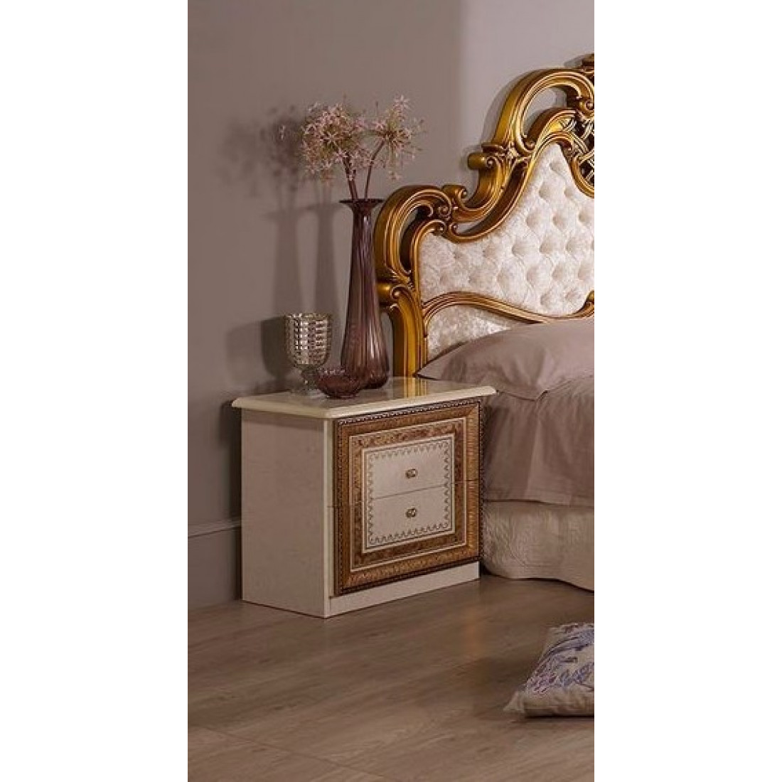 Прикроватная тумба Анита (беж) от Российской фабрики «ДИА мебель» выполнена в бежевом цвете с отделкой золотых фасадов. Компактная и вместительная тумба, поможет вам держать все необходимые вещи под рукой. Удивит Вас своей многофункциональностью. Такая тумба коллекции "Анита" придаст вашей спальне экстравагантность и принесет свежие нотки в Ваш дом.