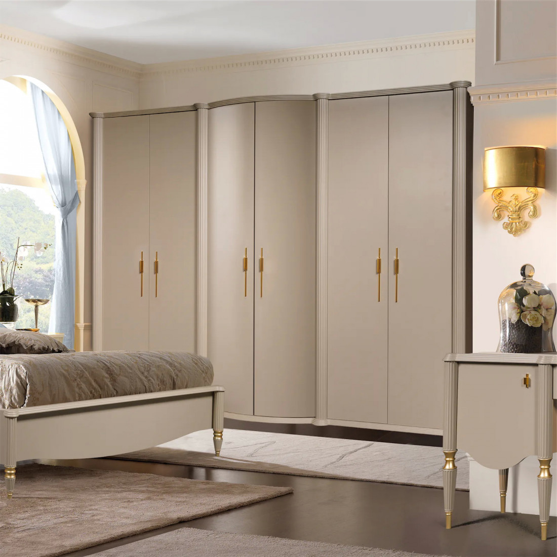 Четырехстворчатый шкаф для одежды с зеркалом Rimini РМШ1/4 (латте)