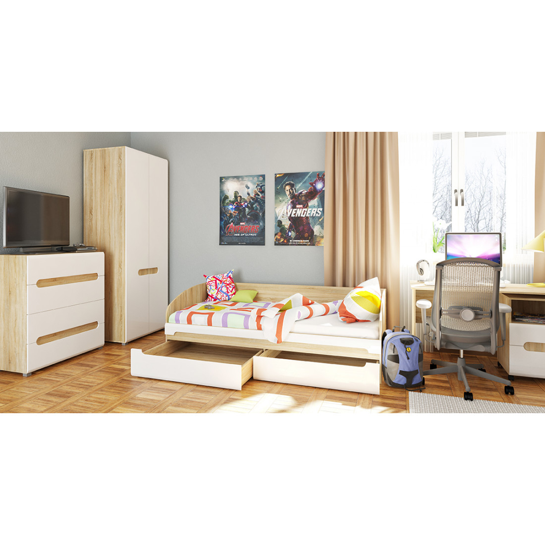 Детская-молодежная спальня Леонардо по стильному исполнению соответствует последним тенденциям интерьерной моды.