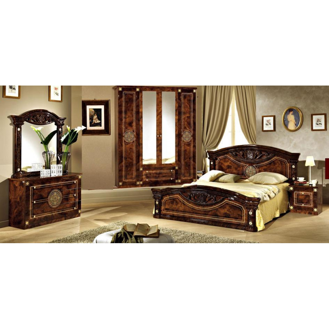 Спальня Рома (орех) от Российской фабрики «ДИА мебель» выполнена в строгом, классическом стиле. Ореховый цвет в сочетании с глянцевым покрытием придает элегантность. Такая спальня поможет Вам окунуться в атмосферу роскоши и комфорта. Безшумные и плавно закрывающиеся дверцы шкафа и комода помогут с легкостью забыть о шуме по утрам. Вся коллекция "Рома" предназначена только для истинных ценителей элегантного классического стиля.