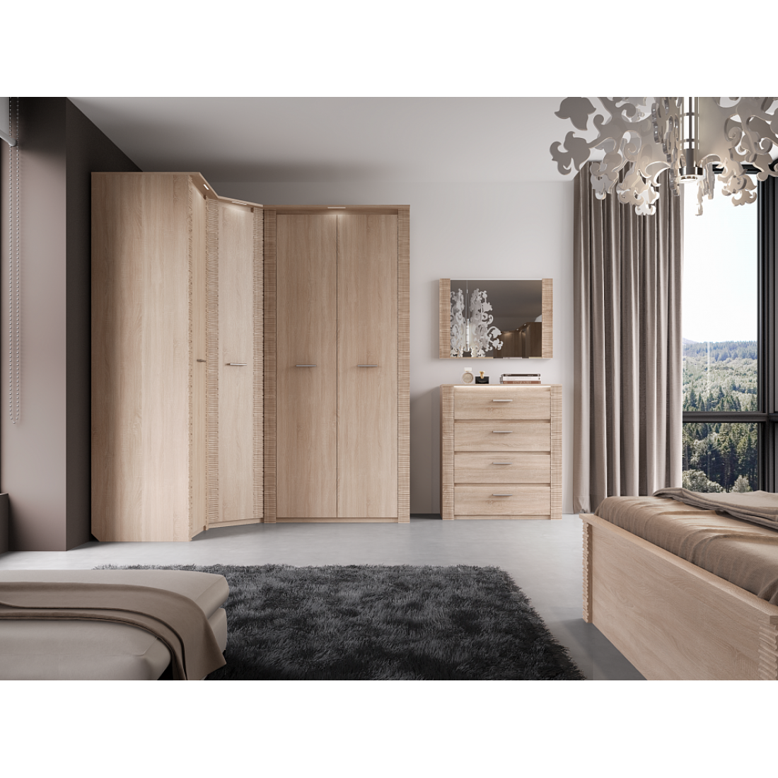В коллекции Элана от фабрики МебельГрад дизайнеры сочетают цвета Дуб сонома и Ель карпатскую.