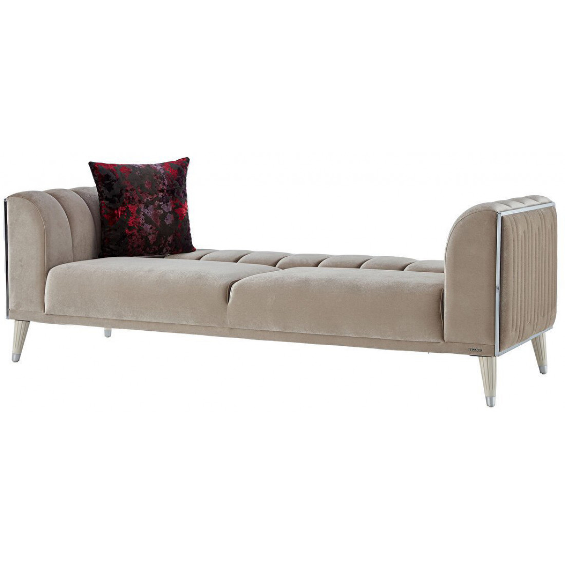 Трехместный диван-кровать Гравита (Gravita) GRAV-02 Беллона вместительный диван с невысокой спинкой. Габаритные размеры дивана 230х88х80см, позволяют трансформировать его в удобную кровать со спальным местом 106*182см. Диван на металлокаркасе, наполнение высококачественный турецкий ППУ. Вертикальная прострочка ткани боковин обрамлена хромированными вставками по периметру. Ножки дивана изготовлены из прочного ABS-пластика.