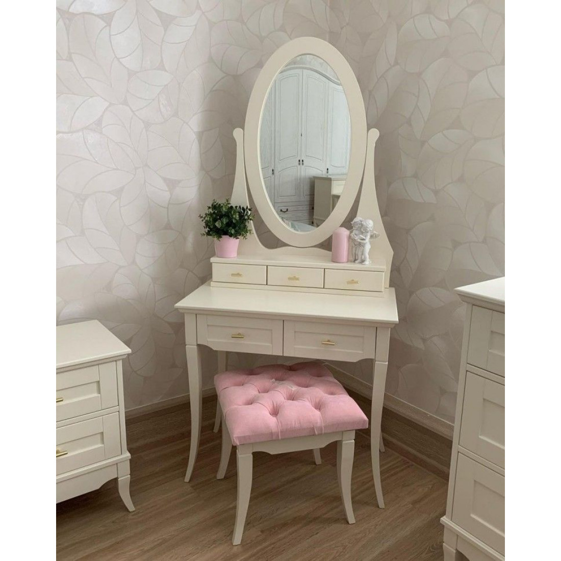 Туалетный столик (дамский набор) Римини MUR-118-07 с круглым зеркалом воплощает в себе классические тренды. Сочетание изящных оттенков удачно освежит Ваш интерьер и придаст знакомым формам новое дыхание. Неповторимые легкость и элегантность этой мебели создадут атмосферу тепла и уюта в Вашем доме.