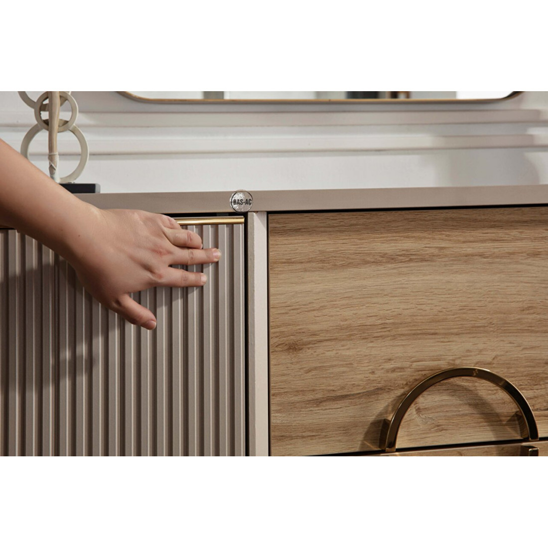 Туалетный столик Санвито SANV-23 один из элементов турецкой коллекции SANVITO. Прекрасное дополнение интерьера спальни, гостиной, залы. Столик обладает сравнительно небольшими размерами 1,170 мм x 470 мм x 830 мм. Может использоваться как дамский столик или как комод. Имеет два больших вместительных выдвижных ящика по центру, и полки для хранения за дверцами фасадов. Кремовый оттенок фасадов, наряду с рифленой поверхностью комбинируется с древесной фактурой ящичков. Оригинальный дизайн и теплые, нежные тона в сочетании с функциональностью столика-комода Санвито SANV-23 делают его изящным и привлекательным.