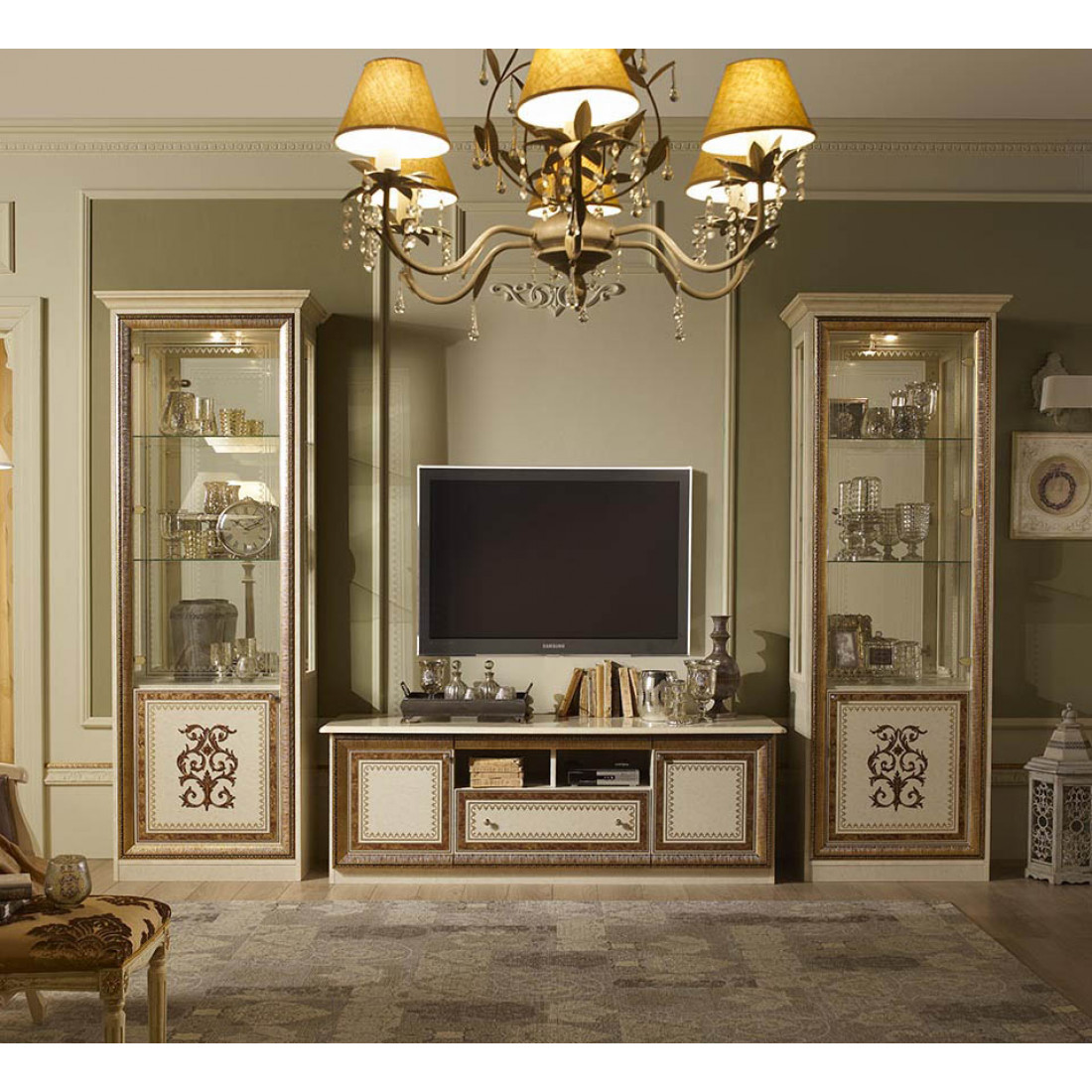Тумба для ТВ Анита (бежевый глянец) от Российской фабрики «ДИА мебель» Выполнена в цвете бежевый глянец с отделкой золотых фасадов. Классический стиль придают интерьеру неповторимую уникальность и роскошь. Изгибающиеся линии придают легкость и воздушность гостиной либо столовой. Коллекция "Анита" придаст вашему дому экстравагантность и принесет свежие нотки.