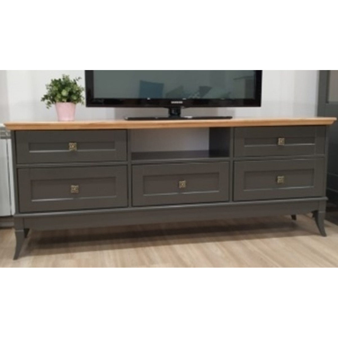 Тумба под телевизор Римини MUR-118-13/5(1) на ножках (RAL 7022) воплощает в себе классические тренды. Сочетание изящных оттенков удачно освежит Ваш интерьер и придаст знакомым формам новое дыхание. Неповторимые легкость и элегантность этой мебели создадут атмосферу тепла и уюта в Вашем доме.