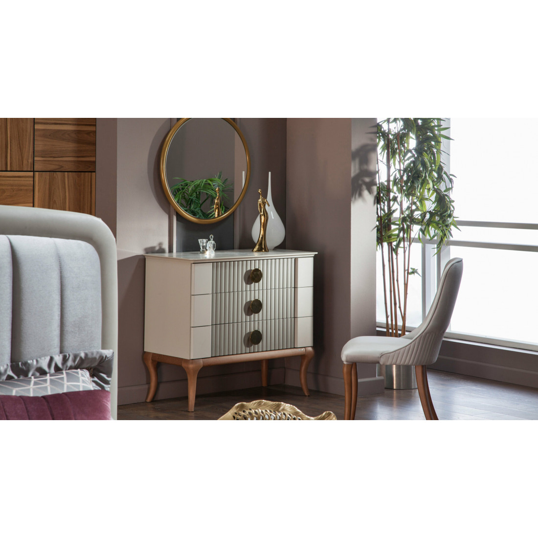 Овальное зеркало для туалетного столика "Песаро" выполнено в стиле неоклассика. Оно легко может быть использовано, как самостоятельный элемент интерьера Вашего дома.